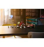 De hot rod auto is een avontuur op wielen, met een gestroomlijnd ontwerp en stoere kenmerken die de uitstraling van snelheid en kracht versterken. Dit voertuig heeft een gedurfde kleurenschema en is klaar om elke race te domineren. Kinderen kunnen zelf bepalen welke verhaallijn ze volgen: racen door een denkbeeldige stad met de hot rod of een grootse strijd aangaan met de tijgermecha.