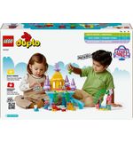 Met deze LEGO DUPLO set kunnen kinderen hun favoriete scènes uit de Disney film "De Kleine Zeemeermin" naspelen en hun eigen verhalen bedenken. Het Ariëls magische onderwaterpaleis is rijk aan details en prikkelt de verbeelding. Laat je kinderen hun creativiteit de vrije loop en bouw samen aan dit magische onderwaterpaleis.