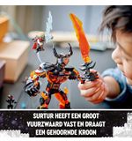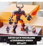 De bouwset bevat drie gedetailleerde minifiguren, waarmee beroemde personages zoals Thor, Surtur en een extra reiziger worden meegeleverd. Thor is gewapend met zijn iconische hamer Mjölnir, terwijl Surtur de vuurdemon het gevecht aanpakt met zijn vurige zwaard. Deze elementen moedigen speelse interactie aan en laten kinderen hun favoriete avonturen naspelen of zelf nieuwe verhalen bedenken.