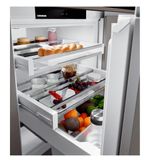 Deze koelkast biedt een ruime inhoud, ideaal voor het bewaren van een grote verscheidenheid aan levensmiddelen. Met slimme indelingen en verstelbare planken kunt u eenvoudig de beschikbare ruimte aanpassen aan uw behoeften. Of u nu groente, fruit, zuivel of dranken wilt opbergen, alles vindt gemakkelijk een plek. De groentelade is speciaal ontworpen om uw verse producten langer te behouden, met een ideale luchtvochtigheid die de kwaliteit en smaak waarborgt.