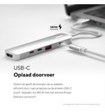 Met zijn vijf veelzijdige poorten biedt de hub de diversiteit die je nodig hebt. Of je nu een presentator bent die zijn scherm moet spiegelen naar een groter publiek of een ontwikkelaar die met meerdere apparaten werkt, deze hub maakt het eenvoudig en moeiteloos. De USB-C-poort ondersteunt niet alleen snelle gegevensoverdracht, maar ook pass-through opladen, waardoor je apparaat altijd van stroom voorzien wordt.