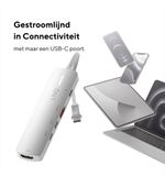 De hoogwaardige materialen en het slanke ontwerp stralen een gevoel van betrouwbaarheid en duurzaamheid uit. Het voelt solide aan in de hand, en het compacte ontwerp maakt het makkelijk om mee te nemen, zodat je altijd en overal productief kunt zijn. Zelfs bij intensief gebruik behoudt de hub zijn prestaties, wat zorgt voor een betrouwbaar onderdeel van je dagelijkse setup.