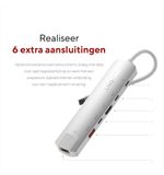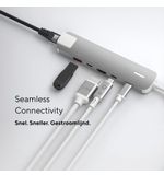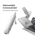 Daarnaast vind je een SD- en microSD-kaartlezer, waarmee het overzetten van foto's of video's van je camera een fluitje van een cent wordt. Ideaal voor creatievelingen of professionals die snel bestanden willen importeren en bewerken zonder gedoe. Het minimalistische ontwerp zorgt ervoor dat de hub gemakkelijk mee te nemen is, terwijl hij toch volledig functioneel blijft in combinatie met een breed scala aan apparaten.