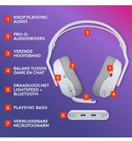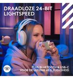 De ingebouwde batterij biedt een lange levensduur, zodat je kunt blijven spelen zonder je zorgen te maken over opladen. Dit geeft je de mogelijkheid om jezelf volledig onder te dompelen in je favoriete games zonder afleiding. Met de Logitech G Astro A20 X LIGHTSPEED gamingheadset in het wit ervaar je niet alleen hoogwaardige audiokwaliteit, maar ook een ongeëvenaarde gebruikerservaring die je gaming naar een hoger niveau tilt.