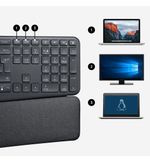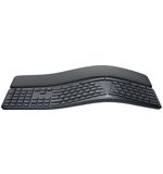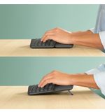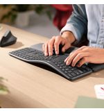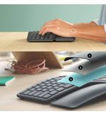 Het Logitech K860 toetsenbord is ergonomisch ontworpen om de natuurlijke houding van je handen en polsen te ondersteunen, waardoor langdurig typen comfortabel blijft. Het gebogen vorm van het toetsenbord en de gewatteerde polssteun zorgen voor een ontspannen positie van je handen, waardoor vermoeidheid en ongemak worden verminderd. Met de split key layout en het gewelfde toetsenbordontwerp worden je handen in de meest neutrale positie geplaatst, wat de belasting op je spieren verlicht voor een comfortabele type-ervaring.