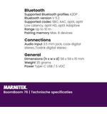 Kortom, de Marmitek Boomboom 76 Portable Bluetooth-ontvanger biedt de ultieme combinatie van gemak, kwaliteit en stijl. Ervaar zelf het plezier van draadloos muziek streamen en dompel je onder in een wereld van ongekende muzikale vrijheid. Laat je inspireren door de mogelijkheden van de Marmitek Boomboom 76 en geniet van een grenzeloze muziekervaring, overal en altijd.