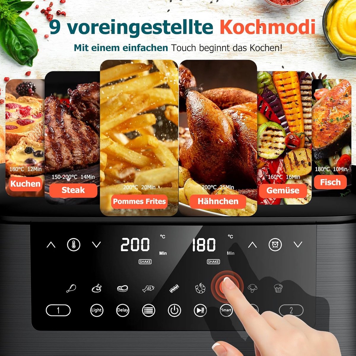 Of je nu een snelle maaltijd wilt bereiden na een lange werkdag of indruk wilt maken op je gasten tijdens een etentje, de Dubbele Airfryer helpt je om moeiteloos heerlijke gerechten op tafel te zetten. Bestel nu en ontdek zelf het gemak en de veelzijdigheid van deze Dual Cook heteluchtfriteuse. Succes gegarandeerd!