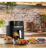 Met de Moulinex Easy Fry & Grill Vision EZ506820 haal je een veelzijdige keukenhulp in huis die een rijke culinaire ervaring belooft. Deze heteluchtfriteuse en grill combineert stijlvol design met geavanceerde technologie om jou te helpen bij het bereiden van gezonde en smakelijke gerechten. Met een vermogen van 1550W en een royale inhoud van 4,2 liter biedt deze keukenvriend voldoende capaciteit om maaltijden te bereiden voor het hele gezin.