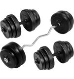 De zwarte kunststof halterschijven zijn duurzaam en van hoge kwaliteit, waardoor ze bestand zijn tegen intensief gebruik en lang meegaan. De curlstang en halterstang zijn stevig en ergonomisch ontworpen, waardoor ze comfortabel in de hand liggen en optimale grip bieden tijdens het trainen. Of je nu je armen, rug, borst of benen wilt trainen, met deze halterset kun je vrijwel elke spiergroep effectief en doelgericht aanpakken.