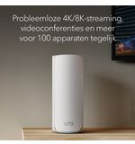 De Netgear Orbi RBE772 2-pack wordt geleverd met twee satellieten die gemakkelijk kunnen worden geïnstalleerd, waardoor je in no-time kunt genieten van een soepele WiFi-ervaring zonder gedoe. Of je nu een film streamt in de woonkamer, online games speelt in de studeerkamer of videovergaderingen houdt in de thuiskantoor, met de Netgear Orbi ben je altijd verzekerd van optimale prestaties.