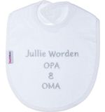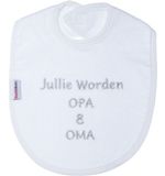 De kleurstelling is speels en aantrekkelijk, perfect voor de levendige wereld van baby's en peuters. Deze slabber kan ook dienen als een uniek cadeau voor toekomstige grootouders, waardoor het een ideale keuze is voor babyshowers of als verrassing voor een nieuw gezin. De emotionele waarde die deze slabber met zich meebrengt, maakt het een bijzonder cadeau dat gekoesterd zal worden.