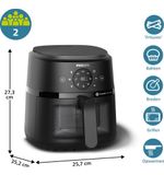 De Philips 2000 Series Airfryer maakt gebruik van Rapid Air-technologie, waardoor je gerechten knapperig van buiten en mals van binnen worden, met slechts een minimale hoeveelheid olie. Dankzij de grote capaciteit van 3,2 liter kun je genoeg voedsel bereiden voor jouw hele gezin. De heteluchtfriteuse is uitgerust met een nauwkeurige temperatuurregeling, zodat je altijd de juiste temperatuur kunt instellen voor verschillende gerechten.
