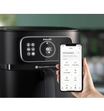 Wat deze heteluchtfriteuse onderscheidt van de rest is zijn connected feature. Dankzij innovatieve technologieën kun je deze Airfryer eenvoudig bedienen via een app op je smartphone. Zo kun je waar je ook bent de gerechten voorbereiden en het kookproces volgen, waardoor je meer vrijheid en flexibiliteit hebt in je dagelijkse keukenactiviteiten.