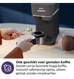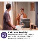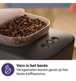 Dankzij het snelle opwarmen en de slimme technologie geniet je binnen enkele minuten van een vers gezette kop koffie. De krachtige pomp zorgt voor een vol aroma en de perfecte temperatuur, elke keer weer. De heerlijke geur van verse koffie en het geluid van bonen die versgemalen worden, prikkelt al je zintuigen en geeft een gevoel van comfort en genot.