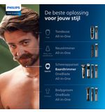 | Verpakkingsinhoud | Baardtrimmer, USB-A kabel zonder adapter Trimkam: Lift & Trim-systeem Onderhoud: Reinigingsborsteltje |