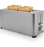 Veiligheid staat voorop bij de Princess 142402. De Cool-Touch behuizing zorgt ervoor dat je je handen niet brandt aan de buitenkant van het apparaat. De uitneembare kruimellade maakt het eenvoudig om het broodrooster schoon te houden en te voorkomen dat er kruimels in het apparaat achterblijven. Met de handige snoeropbergmogelijkheid berg je het snoer netjes op, wat zorgt voor een opgeruimde keuken.