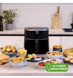 Dankzij de digitale bediening is het instellen van de perfecte temperatuur en bereidingstijd een fluitje van een cent. Met een royale inhoud van 6 liter is deze Aerofryer ideaal voor het bereiden van gerechten voor het hele gezin of wanneer je gasten over de vloer hebt. Bak, grill, frituur of rooster jouw favoriete snacks en maaltijden met een minimale hoeveelheid olie. Geniet van knapperige frietjes, sappige kippenvleugels of gegrilde groenten, allemaal met een gezondere twist.