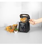 De 1-liter capaciteit is ideaal voor kleine gezinnen of individuen die af en toe willen genieten van krokante frites, snacks of andere gefrituurde lekkernijen zonder dat er een grote frituurpan nodig is. De verwijderbare kookmand, voorzien van een niet-klevende coating, maakt het hele proces van bereiden, serveren en schoonmaken aangenaam eenvoudig. Geen gedoe meer met aangekoekte etensresten; met een snelle reiniging is de frituurfriteuse alweer klaar voor gebruik.