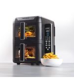 De Progress dubbellaags luchtfriteuse transformeert de manier waarop je kookt en geniet van je favoriete gerechten. Met zijn moderne design en geavanceerde technologie biedt deze luchtfriteuse een innovatieve manier om voedsel te bereiden met minder olie, waardoor je kunt genieten van gezondere maaltijden zonder in te boeten op smaak. De combinatie van twee lagen maakt het mogelijk om grotere hoeveelheden voedsel in één keer te bereiden, wat ideaal is voor gezinnen of tijdens het entertainen van gasten.