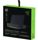 De Razer Handheld Chroma Dockingstation is een innovatieve accessoire die je gamingervaring naar een hoger niveau tilt. Dit dock is ontworpen voor gamers die op zoek zijn naar functionaliteit zonder in te boeten op stijl en esthetiek. De elegante uitstraling, vergezeld van de iconische Razer Chroma RGB-verlichting, zorgt ervoor dat het Dock niet alleen dienstdoet als een praktische oplossing, maar ook een visueel spektakel in jouw gamingopstelling vormt.