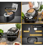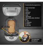 De antiaanbaklaag in de bakvorm zorgt ervoor dat het brood gemakkelijk uit de vorm te halen is en dat schoonmaken een fluitje van een cent is. Dit betekent dat u zich kunt concentreren op de leuke onderdelen van het bakken, zonder na te hoeven denken over langdurige schoonmaakinspanningen. Het design van de machine is modern en slank, zodat deze perfect in elke keuken past. Bovendien beschikt de machine over een intuïtieve bediening, die ook voor beginners toegankelijk is.
