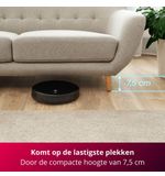 De krachtige zuigmotor zorgt ervoor dat zelfs de kleinste stofdeeltjes en vuil geen kans krijgen om zich te verstoppen. Dankzij het slimme sensoren-systeem navigeert de robotstofzuiger moeiteloos door je huis en vermijdt obstakels. Zo kun je met een gerust hart je waardevolle spullen laten staan terwijl de stofzuiger zijn werk doet.