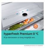 Bij het openen van de deur ervaart u meteen de ruime indeling. De koelruimte biedt voldoende plek voor al uw verse producten, waardoor het eenvoudig is om alles georganiseerd te houden. Dankzij het flexibele indelingsysteem kunt u eenvoudig de planken aanpassen aan uw behoeften, of het nu gaat om grote flessen, schalen met voedsel of kleine verpakkingen. De LED-verlichting zorgt ervoor dat u alles snel kunt vinden, zelfs in de meest volle koeling.