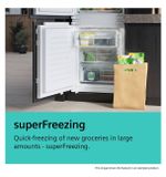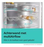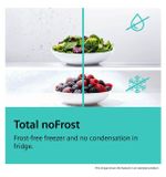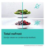 De vriesruimte biedt niet alleen voldoende capaciteit, maar ook handige functies zoals het supervriesprogramma. Dit zorgt ervoor dat u nieuwe producten snel kunt invriezen zonder kwaliteitsverlies. Het No Frost-systeem voorkomt bovendien ijsvorming, waardoor u geen tijd hoeft te investeren in het ontdooien van de vriezer.