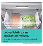 De frisse luchtcirculatie in de koelruimte zorgt ervoor dat uw etenswaren langer mooi en vers blijven. Dit systeem voorkomt dat geuren zich mengen, zodat de smaak en kwaliteit van bijvoorbeeld vlees, groenten en zuivel gewaarborgd blijven. Eveneens zijn de verstelbare glazen planken eenvoudig aan te passen aan uw behoeften, waardoor u de flexibiliteit heeft om zelfs de grootste waren in één keer op te slaan.