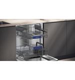 Geluid is vaak een zorg bij vaatwassers, maar met een geluidsniveau van slechts 44 decibel blijft deze machine op de achtergrond, zodat u ongestoord kunt genieten van uw dagelijkse bezigheden. Het slimme ontwerp van de Gewoon-nu-laden, met flexibele korven en opklapbare rekken, zorgt ervoor dat u zelf de indeling van uw vaat kunt bepalen, zodat alles altijd effectief en plekbesparend wordt opgeborgen.