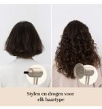 De föhn is lichtgewicht en ergonomisch ontworpen voor comfortabel gebruik, zelfs tijdens lange styling sessies. Het mooie design en de hoogwaardige materialen maken van de föhn een stijlvolle toevoeging aan jouw badkamer of kaptafel.