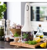 De SMEG HBF03CREU Handmixer in de prachtige crèmekleur combineert op unieke wijze stijl met functionaliteit. Met deze handmixer haal je niet alleen een keukenapparaat in huis, maar ook een stukje design dat je keuken een luxueuze uitstraling geeft. Deze handmixer is niet zomaar een keukenhulp, het is een stijlvolle toevoeging aan jouw keukeninterieur.