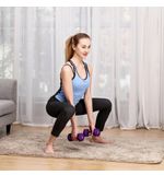 De paarse halterset met 2 x 2 kg gewichten is de perfecte metgezel voor iedereen die op zoek is naar een effectieve manier om thuis aan krachttraining te doen. Met deze set kun je gemakkelijk je spieren trainen, je kracht vergroten en tegelijkertijd in vorm blijven, zonder dat je daarvoor naar de sportschool hoeft te gaan. Het feit dat de gewichten paars zijn, voegt een vrolijke en energieke uitstraling toe aan je workout om je te motiveren en je te helpen om het beste uit jezelf te halen.
