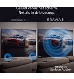 Naast de ongeëvenaarde beeldkwaliteit biedt de Sony Bravia 8 ook een meeslepend geluid dankzij Acoustic Surface Audio+. Het geluid komt letterlijk uit het scherm, waardoor je wordt omringd door audio van bioscoopkwaliteit. Of je nu naar dialogen luistert of naar een muziekconcert kijkt, het geluid is net zo meeslepend als het beeld.