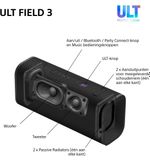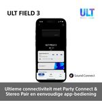Met zijn lange batterijduur kun je urenlang van je favoriete muziek genieten zonder je zorgen te maken over opladen. Dit maakt de ULT Field 3 een perfecte metgezel voor lange dagen buiten of gezellige avonden met vrienden. De Bluetooth-connectiviteit is eenvoudig en betrouwbaar, zodat je snel en probleemloos verbinding kunt maken met je apparaten. Hierdoor geniet je in een handomdraai van al je muziek, podcasts of films met een geluidskwaliteit die je verbijstert.