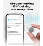 De Soundcore Work Wit is meer dan zomaar een spraakrecorder; het is een waardevolle partner in het vastleggen van belangrijke momenten en het stroomlijnen van communicatie. Met zijn ultracompacte formaat past deze recorder moeiteloos in je tas of zelfs je zak, waardoor je altijd klaar bent om gesprekken, vergaderingen of ideeën vast te leggen, waar je ook bent. De strakke en moderne uitstraling in het wit geeft het apparaat een eigentijdse look, waardoor het niet alleen functioneel is, maar ook een eyecatcher in je tech verzameling.