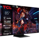 Deze smart TV draait op het Android TV-besturingssysteem, waardoor je eenvoudig toegang hebt tot een scala aan apps, content en streamingdiensten. Met de krachtige processor en geavanceerde connectiviteitsopties ben je verzekerd van vlotte prestaties en eindeloze entertainmentmogelijkheden. De slanke en stijlvolle vormgeving van de TCL QLED 85C71B (2024) voegt een vleugje elegantie toe aan je interieur en maakt hem tot het middelpunt van je kijkervaring.