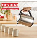 Met een inhoud van 1,7 liter biedt deze waterkoker genoeg capaciteit voor meerdere koppen, perfect voor zowel individuele momenten als sociale bijeenkomsten. Vaarwel lange wachttijden en gedoe, met de Tefal KO5S0D waterkoker heeft u binnen enkele minuten heerlijk warm water tot uw beschikking. Met dit apparaat haalt u niet alleen een hoogwaardig keukenproduct in huis, maar ook een stijlvolle toevoeging die het koken en bereiden van uw favoriete drankjes naar een hoger niveau tilt.