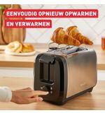 Dankzij de ontdooi- en opwarmfunctie is het ook mogelijk om bevroren brood gelijkmatig te verwarmen zonder dat je dit eerst hoeft te ontdooien. Dit bespaart tijd en zorgt ervoor dat je in een handomdraai kunt genieten van een vers ontbijtje. Het handige kruimelbladen maakt het onderhoud eenvoudig; je hebt in een mum van tijd alles weer opgeruimd en schoon.