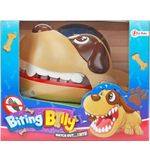 Biting Billy is een kinderspel dat draait om tactiek, geluk en een tikkeltje risico. Het doel van het spel is om Billy de hond te voeren zonder gebeten te worden. Durf jij het risico te nemen en de botten uit Billy's bek te pakken? Of ben je juist voorzichtig en probeer je te voorkomen dat Billy toeslaat? De spanning stijgt bij elke beurt en de vraag blijft: wie durft tot het einde te gaan?