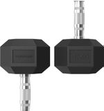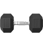 Deze hexagonale dumbbell is voorzien van een rubberen coating, wat niet alleen zorgt voor een uitstekende grip, maar ook de kans op schade aan de vloer minimaliseert. Het gewicht is perfect voor oefeningen zoals bicep curls, tricep extensions en schouder presses, waarmee je verschillende spiergroepen effectief kunt trainen. De ergonomische vorm van de dumbbell helpt je om de oefening nauwkeurig en veilig uit te voeren, wat de kans op blessures vermindert. Bovendien is het compacte formaat handig voor zowel thuisgebruik als voor in de sportschool.
