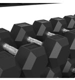 De ergonomische hexagonale vorm van de dumbbells voorkomt dat ze kunnen rollen, waardoor je altijd verzekerd bent van een veilige en efficiënte trainingsomgeving. Het rubberen oppervlak beschermt niet alleen de dumbbells, maar ook de vloer, waardoor krassen en deuken worden voorkomen. Dit zorgt voor een langdurige gebruikservaring, waarin zowel functionaliteit als esthetiek hand in hand gaan.