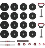 De vidaXL 2-in-1 Dumbbell en Barbell Set is de perfecte aanvulling voor zowel de ervaren sporter als de enthousiaste nieuwkomer. Met een totaal gewicht van 30 kilogram biedt deze set de veelzijdigheid die nodig is om een breed scala aan oefeningen uit te voeren. De stijlvol ontworpen gewichten in zwart en rood stralen een modern en sportief gevoel uit, waardoor ze niet alleen functioneel zijn, maar ook een aanvulling vormen voor uw fitnessruimte.