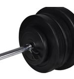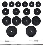De halterset bestaat uit een stevige en duurzame stang, samen met voldoende gewichten die eenvoudig aan de stang kunnen worden bevestigd. Elk gewicht is ontworpen om stevig en veilig op zijn plaats te blijven, zodat je je volledig kunt concentreren op je training zonder je zorgen te maken over je veiligheid. De strakke afwerking en het ergonomische ontwerp van de halter zorgen ervoor dat je grip stevig is, zelfs tijdens intensieve trainingssessies. Dit alles maakt de halterset tot een betrouwbare keuze voor jouw thuisgym.