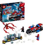 In deze set vind je Spider-Man met zijn speciale Spider-Man-fiets, een gemotoriseerde vijandelijke drone en een Spider-Man minifiguur. Met de eenvoudig te bouwen fiets kan Spider-Man snel door de stad manoeuvreren en boeven vangen. De fiets heeft coole details, zoals een spinnenwebopslagruimte en een gestreepte spoiler. Spider-Man kan gemakkelijk op zijn fiets springen en achter de gemotoriseerde drone aan gaan om de stad te beschermen.