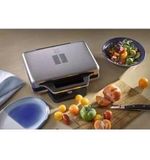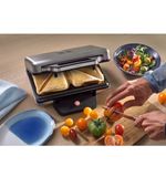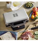 Dankzij de gebruiksvriendelijke bediening maak je eenvoudig de meest smakelijke tosti's. De anti-aanbaklaag van de platen zorgt ervoor dat de broodjes niet aan het apparaat kleven, wat het schoonmaken versnelt en vereenvoudigt. De verwisselbare platen verhogen de veelzijdigheid van het apparaat; of je nu kiest voor een klassieke ham-kaas tosti, een verfrissende gegrilde groenten sandwich of een decadente variant met specerijen en sauzen, met de WMF Lono maak je in een handomdraai een culinaire creatie naar keuze.