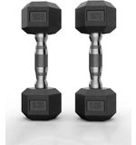 De rubberen afwerking van de dumbbells biedt niet alleen een aantrekkelijke uitstraling, maar ook bescherming voor je vloeren en meubelstukken. Je kunt je training met een gerust hart uitvoeren, wetende dat je geen krassen of andere schade aanricht in je omgeving. Daarnaast zorgt het rubber voor een comfortabele grip, zodat je de dumbbells stevig kunt vasthouden, zelfs tijdens intensieve trainingen. Dit maakt de Hex Rubber Dumbbells niet alleen functioneel, maar ook prettig in gebruik.