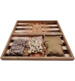 Dit Backgammon bordspel is gemaakt van hoogwaardig rose hout, waardoor het niet alleen duurzaam is, maar er ook nog eens prachtig uitziet. De warme en natuurlijke kleur van het hout geeft een gevoel van authenticiteit en geeft het spel een luxe uitstraling. Het schaakbord is in het midden van het bordspel geïntegreerd, waardoor je niet alleen kunt genieten van Backgammon, maar ook van een potje schaken. Dit maakt het spel veelzijdig en zorgt ervoor dat je nooit uitgespeeld raakt.